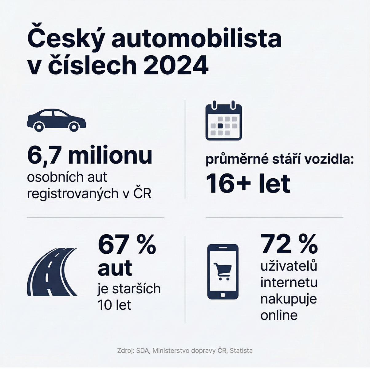 Český vozový park patří k nejstarším v Evropě: průměrné stáří registrovaného automobilu přesahuje 16 let a více než dvě třetiny aut na silnicích jsou starší deseti let. To znamená jediné majitelé pravidelně shánějí náhradní díly, a stále častěji to dělají online. Podle odborných průzkumů nakupuje přes internet více než 72 % českých uživatelů sítě, přičemž Česká republika obsazuje druhé místo ve střední a východní Evropě podle tohoto ukazatele. Právě v kategorii autodílů však online důvěra zůstává výrazně nižší než v ostatních produktových kategoriích a to navzdory celkovému růstu zvyku nakupovat v síti.